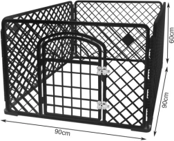 Търсите надежден начин да създадете за своя любимец безопасно и удобно място? Това пластмасово заграждение предлага универсална употреба за кучета, кученца и дребни животни. С размери 90 × 90 × 60 см осигурява достатъчно пространство за свободно движение, докато здравата конструкция от PP и метални елементи гарантира стабилност и дълъг живот.