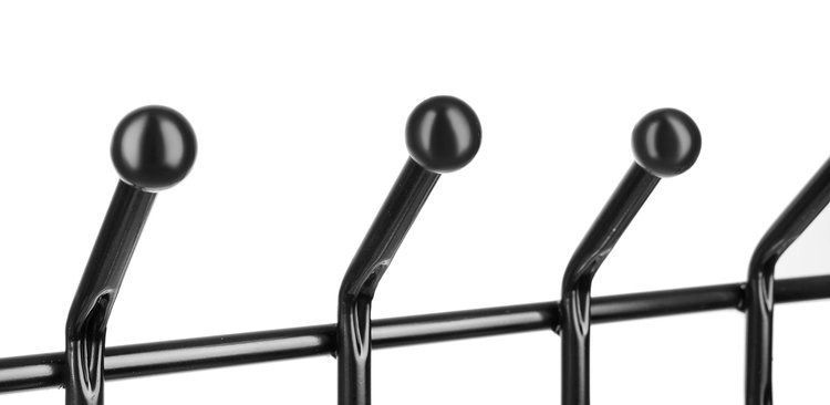 Два реда куки с обли накрайници щадят тъканите и осигуряват достатъчно място за якета, палта, шалове, шапки и дамски чанти.
