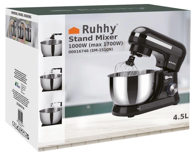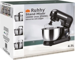 Планетарният робот Ruhhy с мощност 1700 W е оборудван с здрава неръждаема купа с обем 4,5 литра, която осигурява лесна употреба благодарение на ергономичния дизайн на дръжката и предпазния капак срещу пръски. Нехлъзгащите се вакуумни крачета гарантират стабилност на робота върху работния плот. Сред другите му предимства са 8-степенно управление, включително пулсен режим, идеален за различни кулинарни техники като разбиване, смесване и месене.