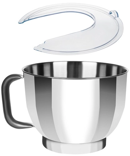 Купата с капацитет 4,5 литра е изработена от висококачествена неръждаема стомана и включва предпазен капак срещу пръски, което помага за поддържане на чистота по време на разбъркване.
