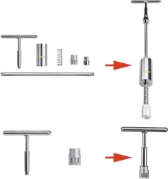 T-образна дръжка и стоманено тяло с хромирани части осигуряват здравина, стабилност и удобен захват за контролиран теглещ удар.