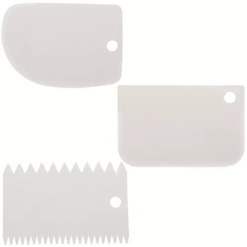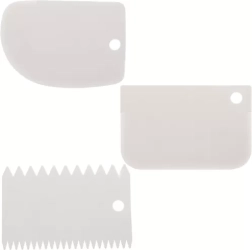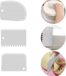 В комплекта са включени три декоративни шпатули, всяка с различен релеф, които ще ви помогнат да създавате разнообразни текстури върху тортите.