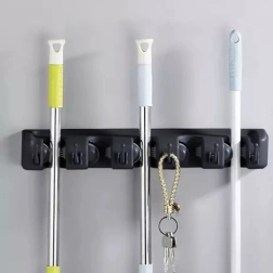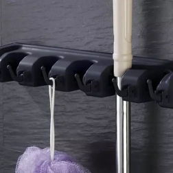 Универсалният стенен държач за инструменти предлага удобно и стабилно решение за съхранение на различни почистващи инструменти като метли, мопове, лопати или кърпи.