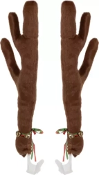- Еластични кафяви рога: Два големи и издръжливи рога със звънчета на червена и зелена панделка за перфектна празнична атмосфера.