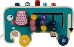 Детска дървена играчка във форма на слон, която развива моторните умения и логическото мислене. Предлага много активности, които ще забавляват децата с часове.