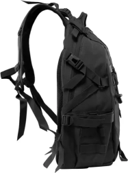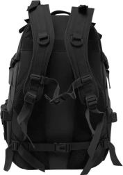 Търсите надеждна и издръжлива раница, която се справя в планината, при пътувания и в града? Тази черна раница с обем 25 l комбинира военни елементи с отлична ергономия. Има голямо основно отделение с удобен ципов достъп, вътрешен плосък джоб с велкро и четири външни джоба (2 предни с цип, 2 странични) за прегледно подреждане на екипировката. Включен е дъждобран с защита IPX1, който покрива раницата при дъжд.