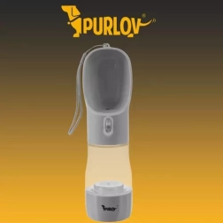 Пътната бутилка за кучета Purlov предлага уникално решение за хидратация и хранене на вашите любимци, независимо дали сте на път или просто на разходка. Има три основни функции: съхранява вода, храна и позволява лесно хранене и поене на вашата котка или куче.