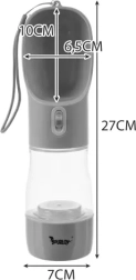 Бутилката служи като резервоар за вода, храна и има интегрирана купичка за лесно хранене на вашия космат приятел. Това решение гарантира, че вашият любимец никога няма да страда от жажда или глад.