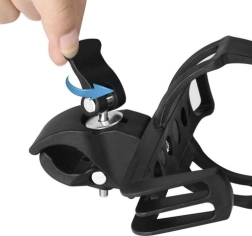 Държачът може лесно да се закрепи към колело, тротинетка или друго превозно средство с помощта на клипсова скоба. Монтажът отнема само няколко минути.
