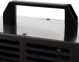 Работата е лесна: механичният таймер 1–60 минути позволява да зададете продължителност на цикъла, а след изтичането му устройството се изключва само. Компактният метален дизайн, мощният вентилатор (до 2800 rpm, 45 CFM) и практичната дръжка улесняват пренасянето и употребата в различни пространства.