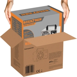 Озоновият генератор BIGSTREN използва силните окислителни свойства на O3 за хигиенизиране на средата и неутрализиране на миризми. Благодарение на мощността 20 000 mg/h бързо достига ефективни концентрации в стаи, гаражи и интериори на автомобили. Озонът не прикрива миризмите, а разгражда молекулите им и след процеса естествено се превръща обратно в кислород.