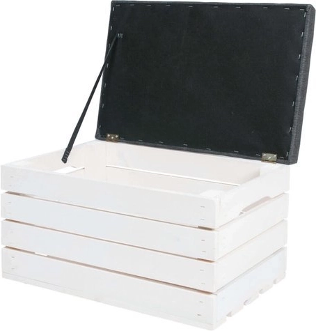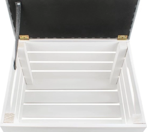 Повдигащият се капак на панти с ремък осигурява удобен достъп до голямото пространство за съхранение на одеяла, обувки или играчки и поддържа дома подреден.