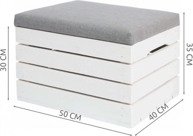 Здравата изработка от сушено и рендосано смърчово дърво с широки ламели (до 13 cm) гарантира стабилност и дълъг живот. Високоеластичната пяна T-25 предлага удобно сядане, независимо дали използвате пуфа като пейка в антрето, като поставка за крака до дивана или като практична помощна масичка на балкона.