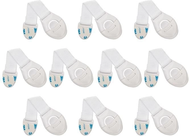 Комплектът съдържа десет заключалки, които ефективно предотвратяват прищипване на пръстите на малките деца и ги предпазват от нежелан достъп до опасни места. Удобната употреба позволява бързо отваряне и затваряне на шкафа без да е необходимо да отлепвате цялата заключалка.