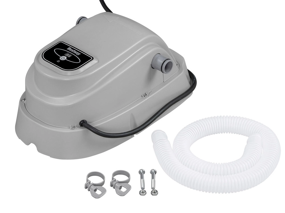 Насладете се на къпането по-рано и по-удобно с подгревателя за басейн BESTWAY. Устройството предлага висока мощност 2800 W, бързо повишаване на температурата на водата до 20 °C за оптимален комфорт, дигитално управление на температурата и защита от прегряване. Съвместим с филтърни помпи до 3 785 l/h и подходящ за басейни с обем 1 520–17 035 l.