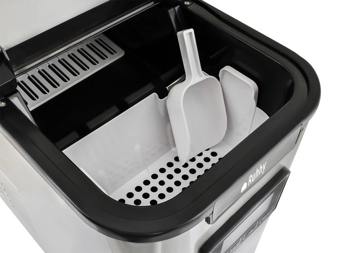 Производителят на лед Ruhhy е перфектното решение за приготвяне на ледени напитки у дома и в офиса. С високия си капацитет до 12 kg лед дневно и възможността за производство на три различни размера кубчета (S/M/L) винаги можете да имате лед точно според нуждите си. Достатъчно е да напълните резервоара с вода, да изберете размер на кубчетата и да се наслаждавате на ледената свежест само след няколко минути.