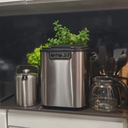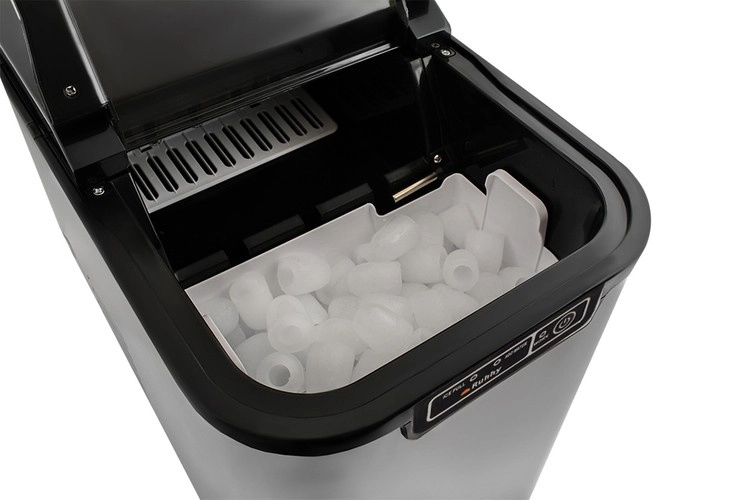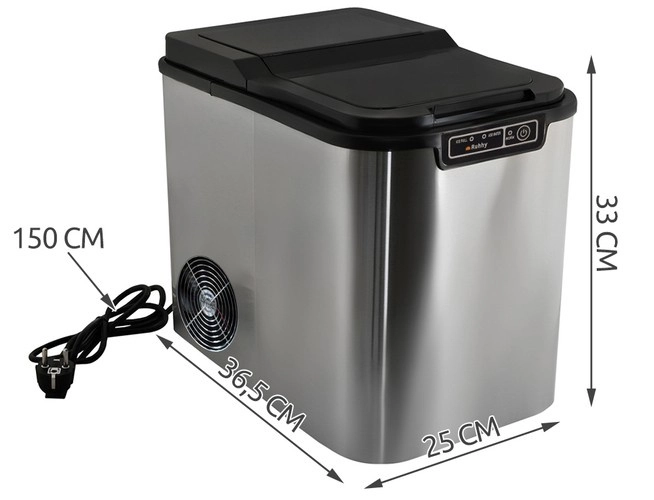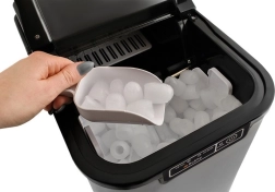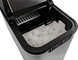 Настолна машина за лед на кубчета за домашна употреба. С висока производителност до 12 кг лед на ден и без необходимост от директно водоснабдяване. Достатъчно е да налеете вода в резервоара и можете да започнете производство на лед за 9–13 минути.