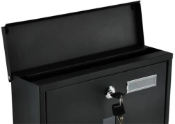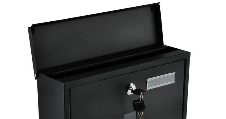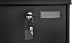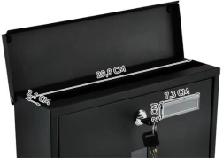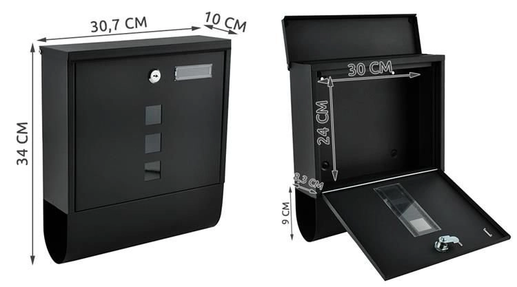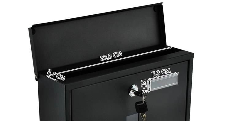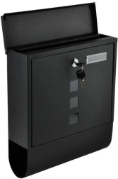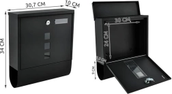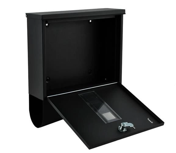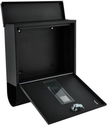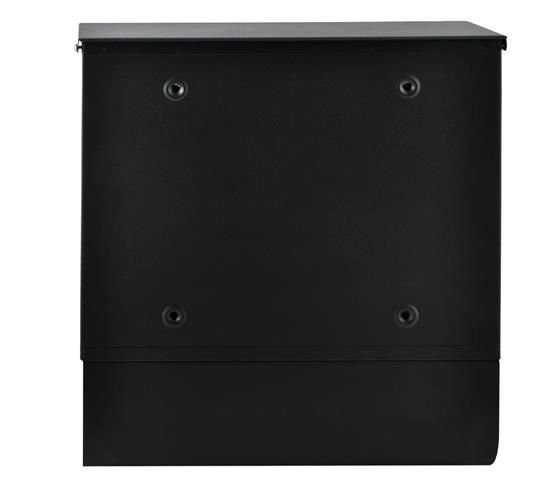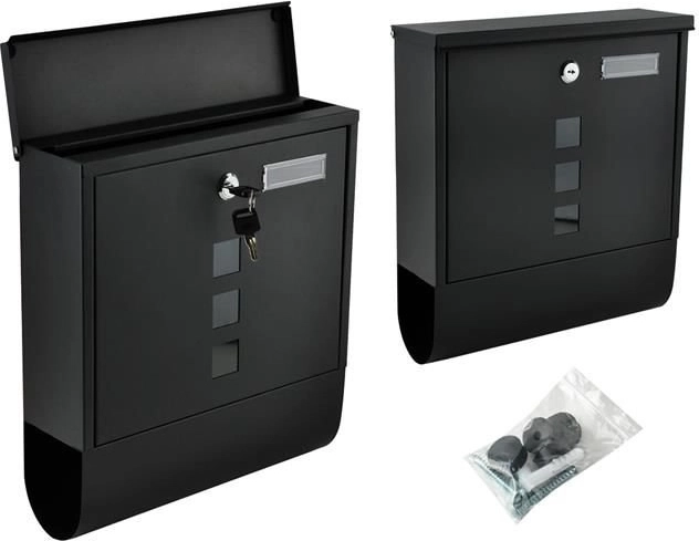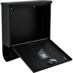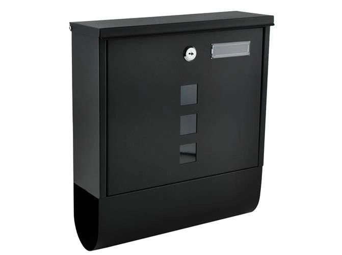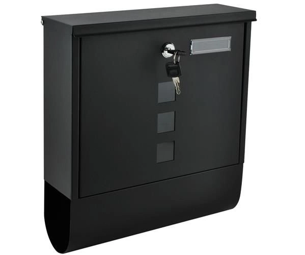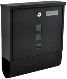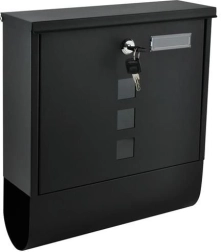 Елегантна черна пощенска кутия от здраво галванично поцинковано метално покритие, която осигурява безопасно получаване на вашата поща. Има покрит отвор за формат A4, заключваща се вратичка с 2 ключа и практичен държач за вестници и брошури. Здравата конструкция с защита срещу атмосферни влияния и вентилационни отвори поддържа пратките сухи, а монтажът е лесен благодарение на включените аксесоари.