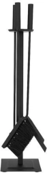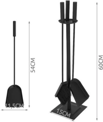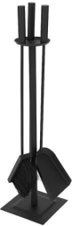 Елегантен комплект каминни принадлежности 4-в-1 за лесно обслужване на камина, печка, грил и огнище. Включва ръжило, лопатка, четка и стабилна стойка с подложки против плъзгане. Здраво изпълнение от неръждаема стомана с матово черно покритие, което прикрива дребни драскотини и замърсявания и придава на интериора чист, модерен вид.