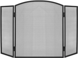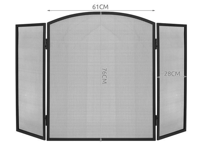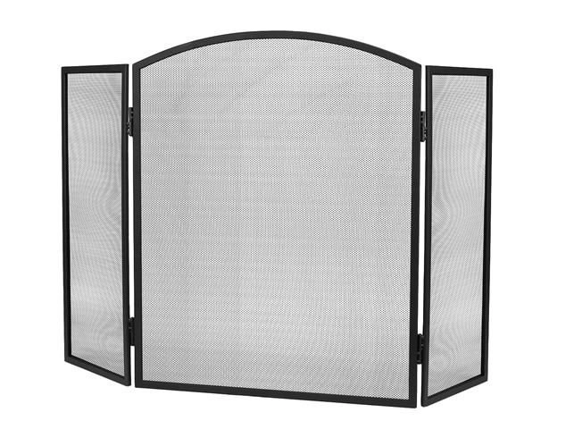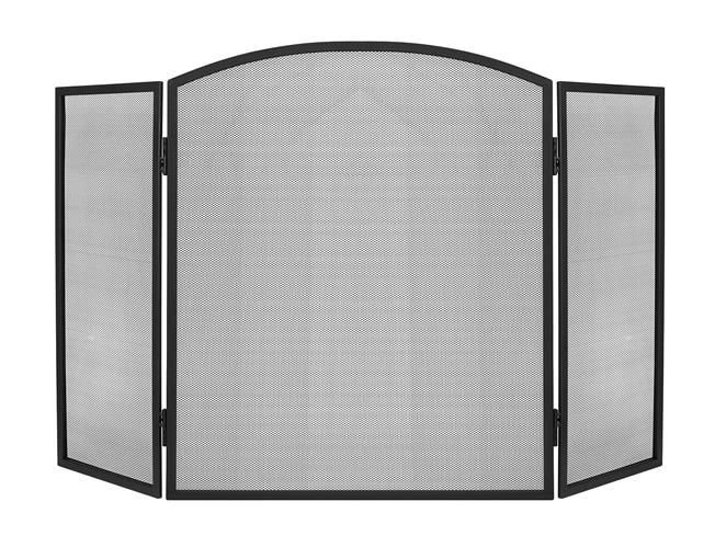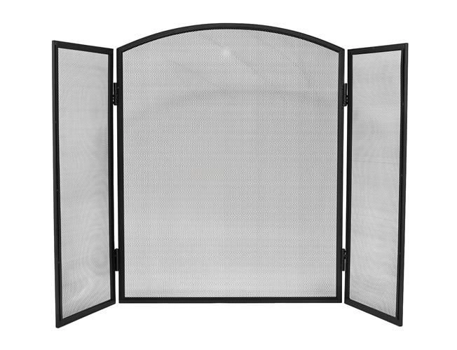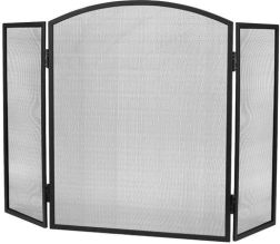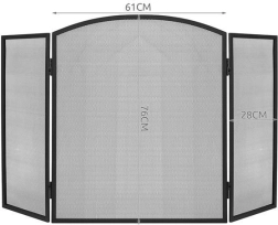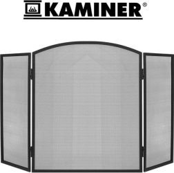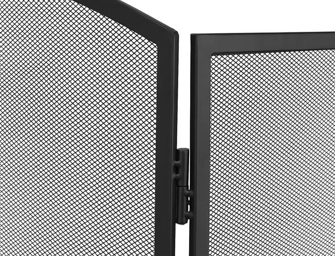 Елегантен триделен параван за камина с фина стоманена мрежа надеждно предпазва пода и околното пространство от нажежени искри и въглени. Благодарение на размерите 118 × 76 см предлага високо ниво на безопасност, матовото черно изпълнение отлично се съчетава с интериора, а сгъваемата конструкция позволява свободно настройване според ширината и формата на камината. Издръжливата стоманена мрежа пропуска топлината и гледката към пламъците, но задържа замърсяванията и жаравата.