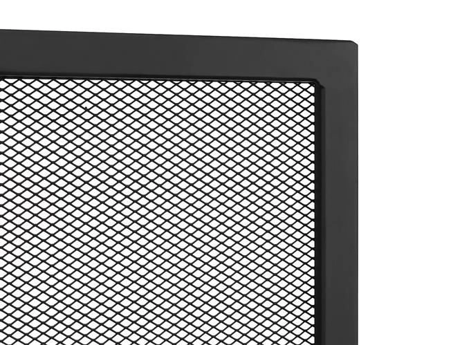Безопасността и стилът при открито огнище вървят ръка за ръка. Този здрав параван за камина от стомана и желязо с фина мрежа предпазва от отлитащи искри и нажежени частици, като същевременно запазва видимостта към пламъците и пропуска топлината в помещението. Матовото черно изпълнение е устойчиво на дребни надрасквания и замърсяване и подхожда както на модерни, така и на класически интериори.