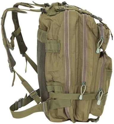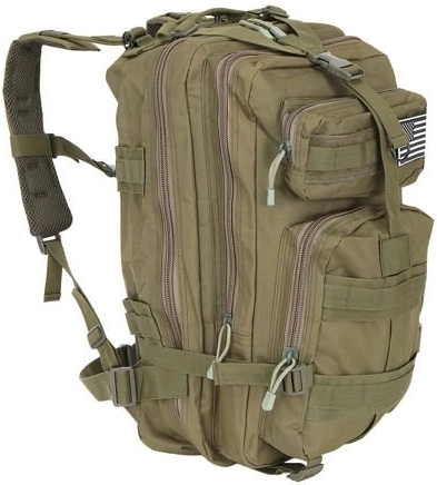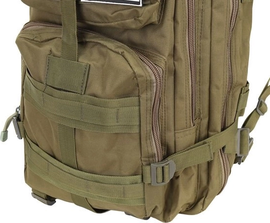 Военната раница с капацитет 38 литра е перфектен избор за походи в планината и за ежедневието. Изработена е от водоустойчив и издръжлив материал, който гарантира дълъг живот и устойчивост на разкъсване. Пет отделения осигуряват достатъчно място и добра организация на вещите ви, а системата за бързо закопчаване допринася за практичност и удобство.