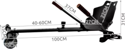 Здравата рамка от метал и устойчиви материали е проектирана за безопасност и дълъг живот. Плавното регулиране на дължина 40–60 см позволява прецизно напасване към ръста на ездача, докато предното въртящо се колелце осигурява гладка маневреност. Монтажът е бърз и без инструменти – с здрави скоби и регулируеми велкро колани лесно закрепвате надстройката към различни видове ховърборди.