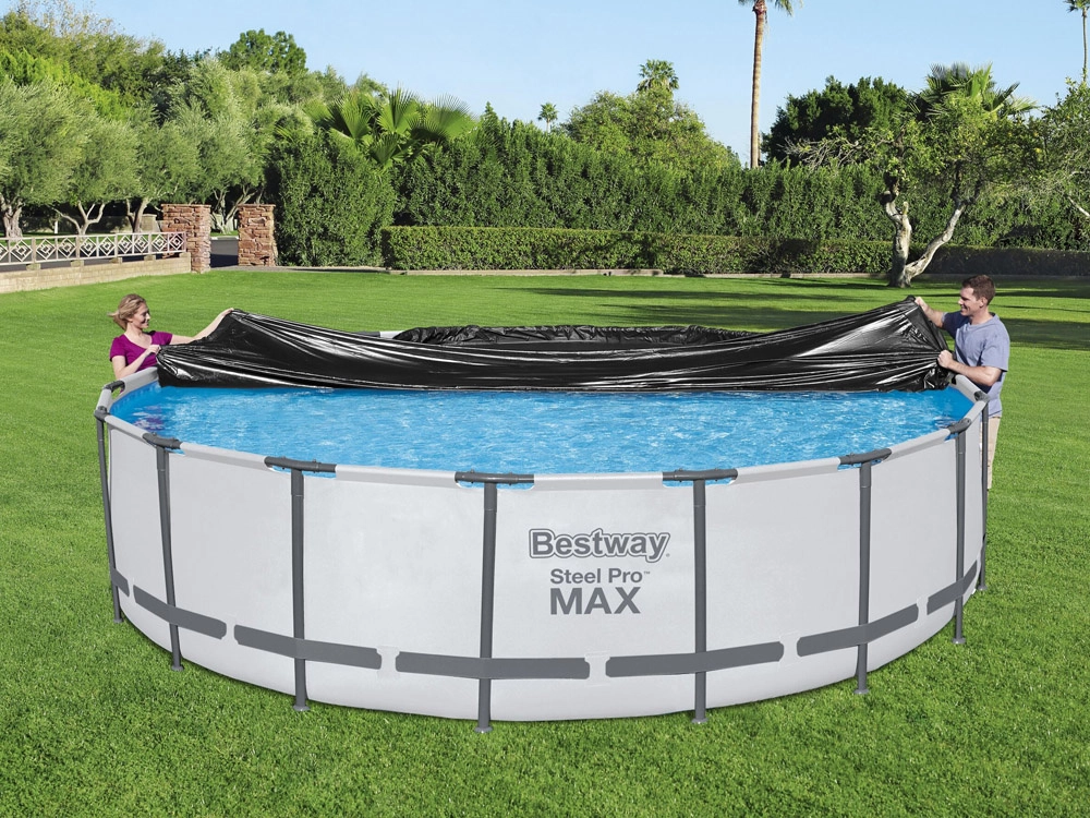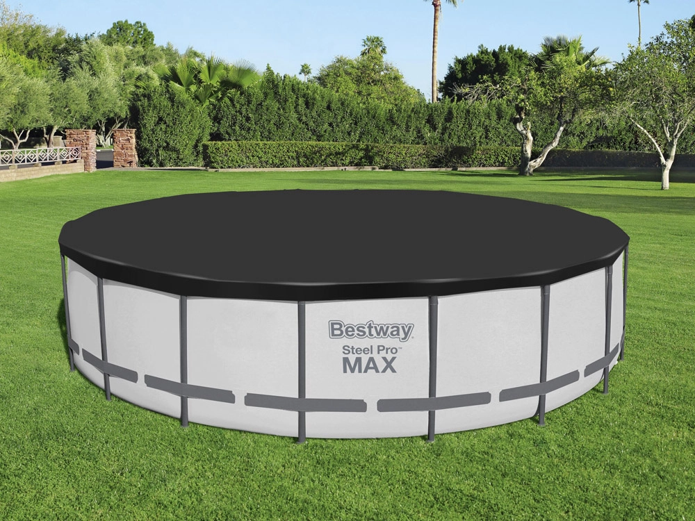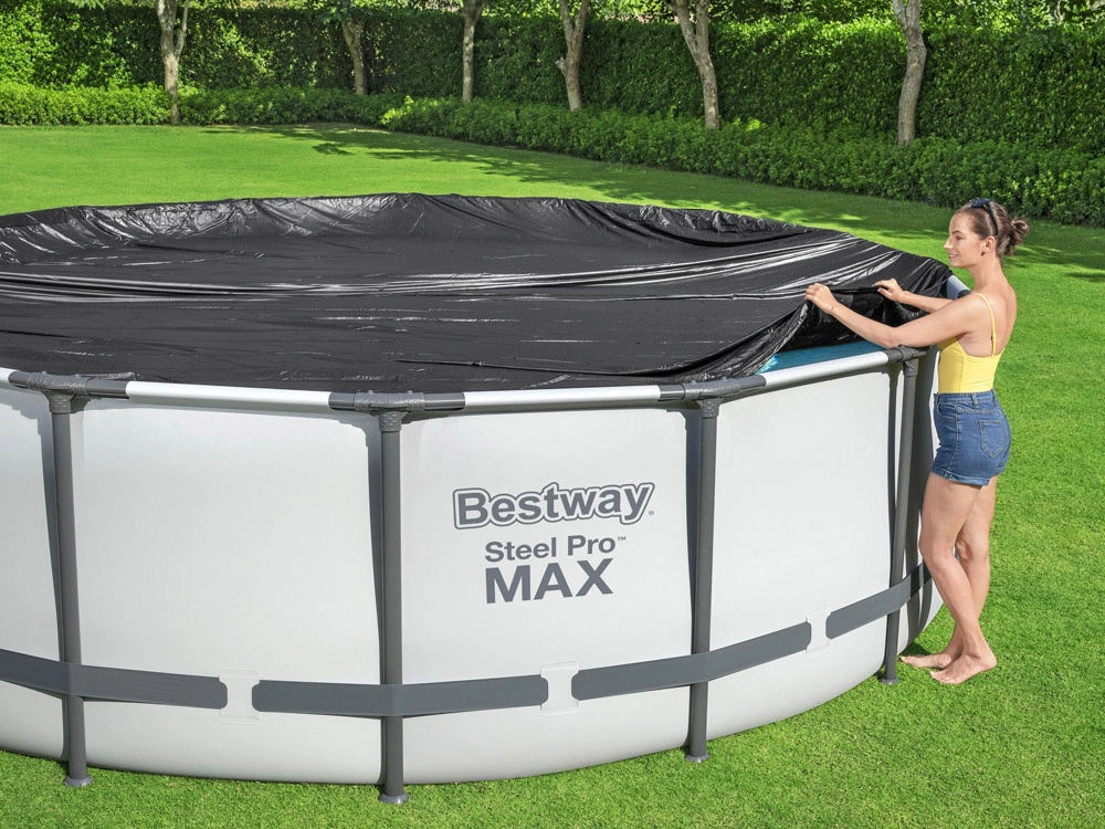 Защитно покривало за басейни Bestway предпазва вашия басейн от замърсявания като насекоми, листа и слаб дъжд. Осигурява допълнителен изолационен слой за поддържане на температурaта на водата и повишава безопасността срещу случайно падане в басейна.