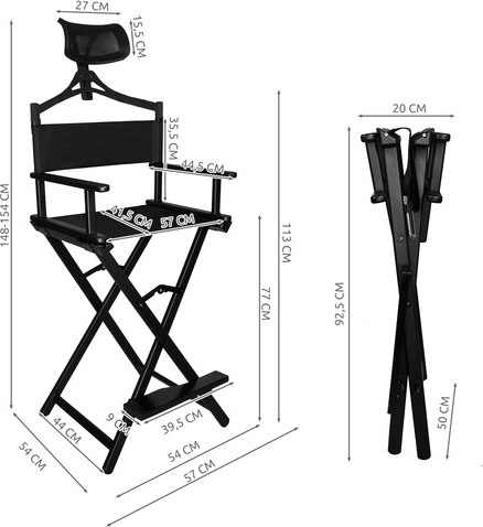 Търсите надежден, лек и стабилен стол за грим и визаж? Този висок режисьорски стол от алуминий предлага професионална ергономия, лесно сгъване и издръжливи материали. Седалката и облегалката от тъкан Oxford 600D са водоустойчиви и лесни за поддръжка, а подвижният подглавник повишава комфорта при по-дълги сесии.