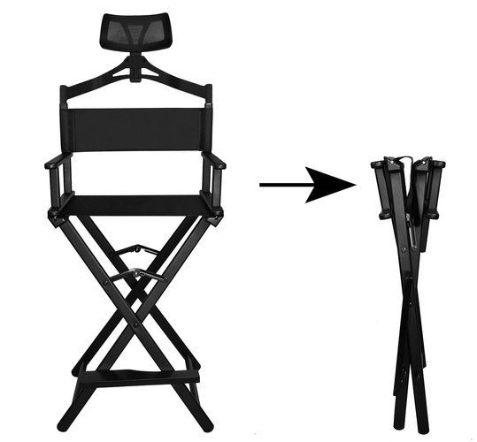 Благодарение на здравата конструкция с товароносимост 140 кг, поставката за крака и удобните подлакътници, столът е отличен за салони, фотосесии и филмови площадки, както и за мобилни гримьори. Сгъваемата X рамка позволява бързо сгъване и компактен транспорт без усилие.