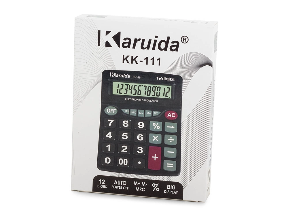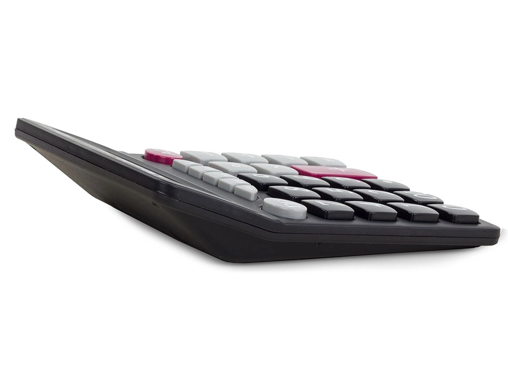 Този калкулатор с големи цифри е оборудван с 12-цифрен дисплей, който е наклонен под ъгъл за по-добра четливост. Той е идеален инструмент за ежедневни изчисления както в домакинството, така и в офиса. Клавишите са изработени от издръжлива пластмаса, което гарантира дълъг живот.