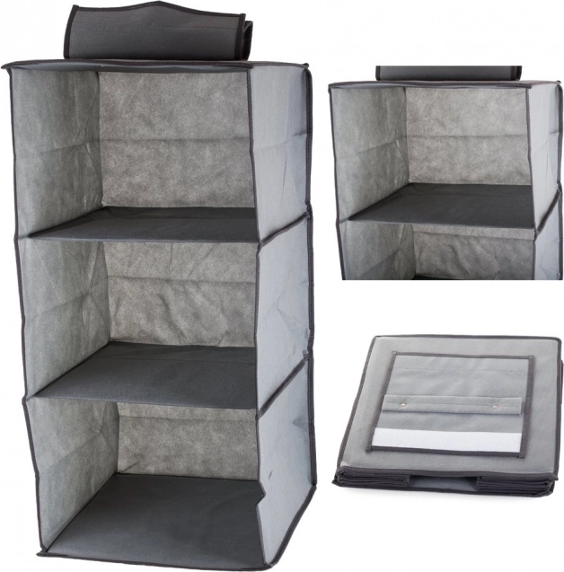 Този окачващ органайзер пести място и позволява лесно разделяне на дрехите благодарение на трите нива рафтове.