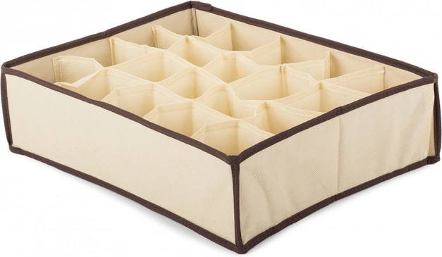 Практичен бежов органайзер за подредено съхранение на бельо и чорапи във вашия гардероб или чекмеджета. Разполага с 16 отделения, които ви помагат да поддържате ред във всяко чекмедже.