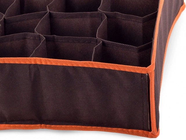 Поддържайте бельото, чорапите и други дребни вещи организирани с този практичен органайзер за чекмедже. Той предлага множество отделения за лесна и практична организация. Стабилната конструкция е осигурена благодарение на укрепващи елементи отстрани. Ако ви е нужен за пътуване, сгъва се до компактни размери, така че почти не заема място.