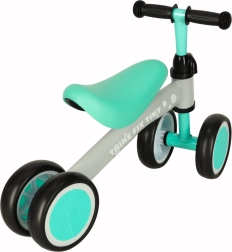 Четириколесната конструкция дава увереност на малките ездачи, намалява риска от преобръщане и ускорява усвояването на баланса.