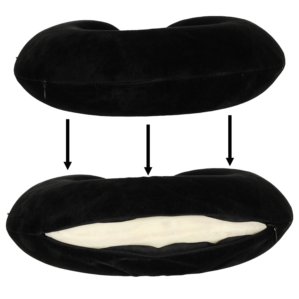 Ергономична пътна възглавница за врат осигурява комфорт при дълги пътувания със самолет, кола и влак. Благодарение на U-образната форма стабилизира главата, облекчава мускулите на врата и намалява напрежението. Меката велурена повърхност и мемори пяната се адаптират към вашата анатомия за максимална почивка.