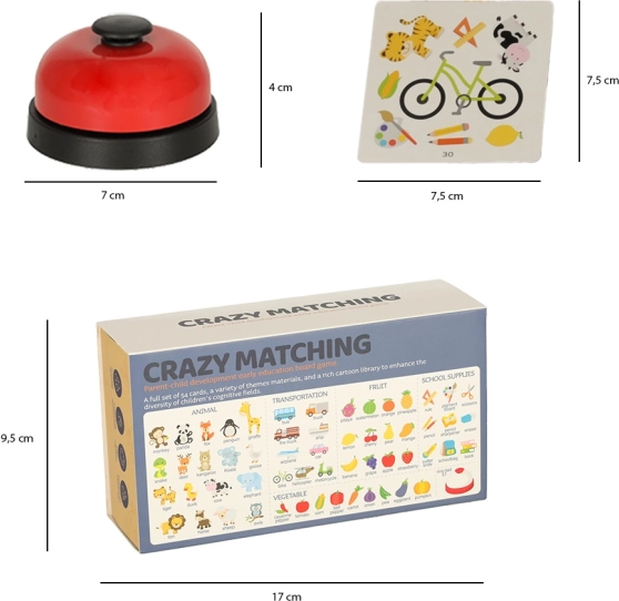 Кутията съдържа 54 карти и червен звънец, който придава динамика и забавление на играта. Дизайнът на картите с цветни илюстрации впечатлява деца и възрастни и подобрява техните рефлекси и наблюдателност.