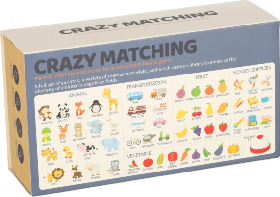 Влезте в света на бързите рефлекси с играта Crazy Matching, която носи радост на цялото семейство. Тази игра е изпълнена с напрежение, в което играчите трябва възможно най-бързо да намерят съответстващия образ на картите. В първия игрови режим за двама играчи раздавате всички карти и във всеки рунд се опитвате пръв да откриете съвпадение между две карти. Победител е играчът с най-много карти.