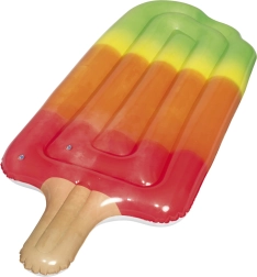 Стилното надуваемо легло във форма на сладолед на клечка впечатлява от пръв поглед с ярките си цветове. Идеално е за релакс на повърхността на басейна и осигурява удобство дори за по-високи хора благодарение на щедрите размери 185 × 89 см. След изпускане се пренася лесно и се побира в чанта за всяка почивка.