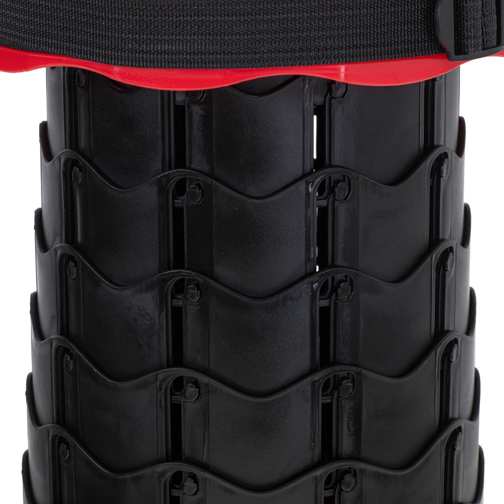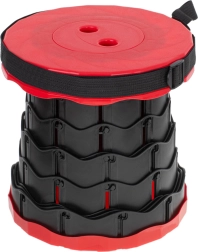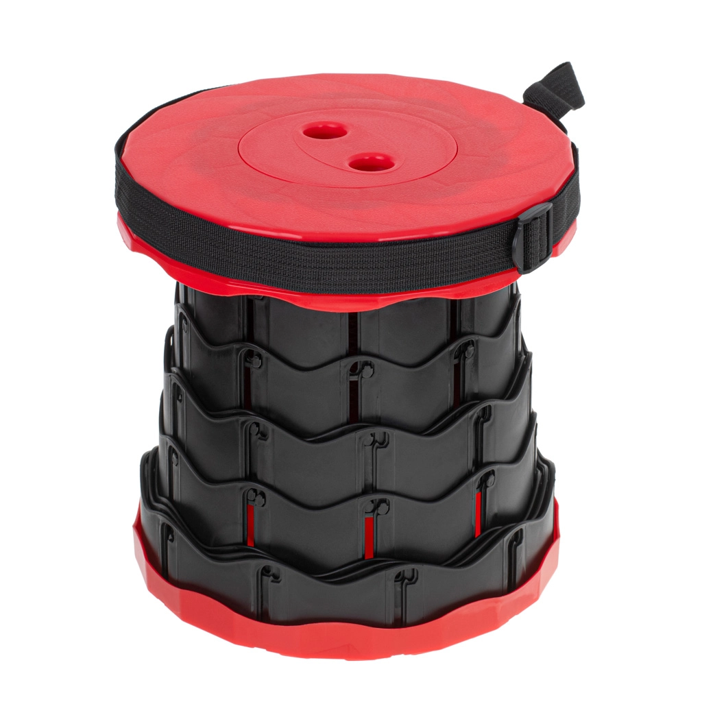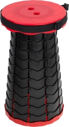 Този телескопичен стол се разгъва за миг – достатъчно е да хванете горната и долната част, да завъртите, да изтеглите до желаната височина и да оставите механизмът да се заключи. Здравата пластмасова конструкция осигурява стабилност и комфорт при седене при всякакви условия.
