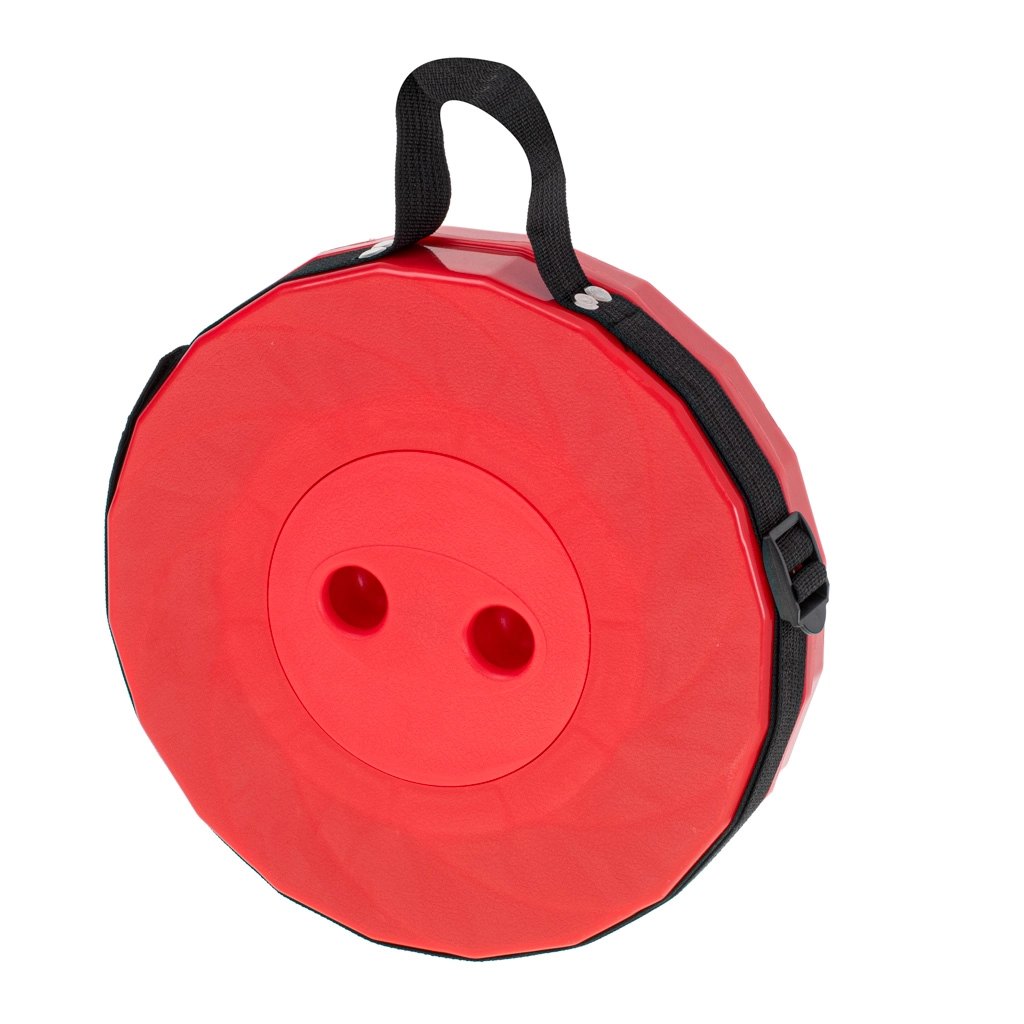 Идеален за къмпинг, пикник, риболов, работа в градината или чакане на опашка. В сгънато състояние е плосък и кръгъл, заема минимално място и благодарение на презрамката може да се носи през рамо.