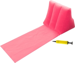 Тази практична плажна постелка съчетава комфорта на шезлонг и компактността на пътна екипировка. Интегрираната надуваема облегалка облекчава гърба при четене и почивка, а меката повърхност осигурява приятно седене и лежане. Благодарение на ниското тегло и малките размери след сгъване, лесно я взимате на море, къмпинг или пикник.
