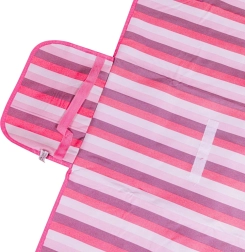 Светлият цвят и декорациите ще ви помогнат лесно да откриете зоната си за отдих, а благодарение на практичната дръжка лесно ще го пренесете от колата до плажа. Освен това одеялото е сгъваемо и не заема много място, когато не го използвате.