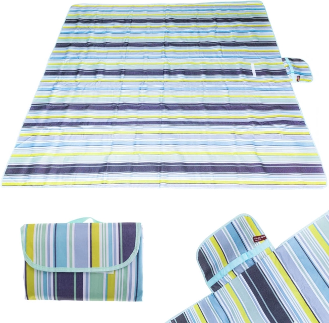 Това голямо сгъваемо плажно и пикник одеяло е подходящо за семейства и приятели, които искат да прекарат приятни моменти на плажа или в парка. Благодарение на размера 200x200 см осигурява достатъчно пространство за релакс и свободно време.