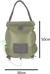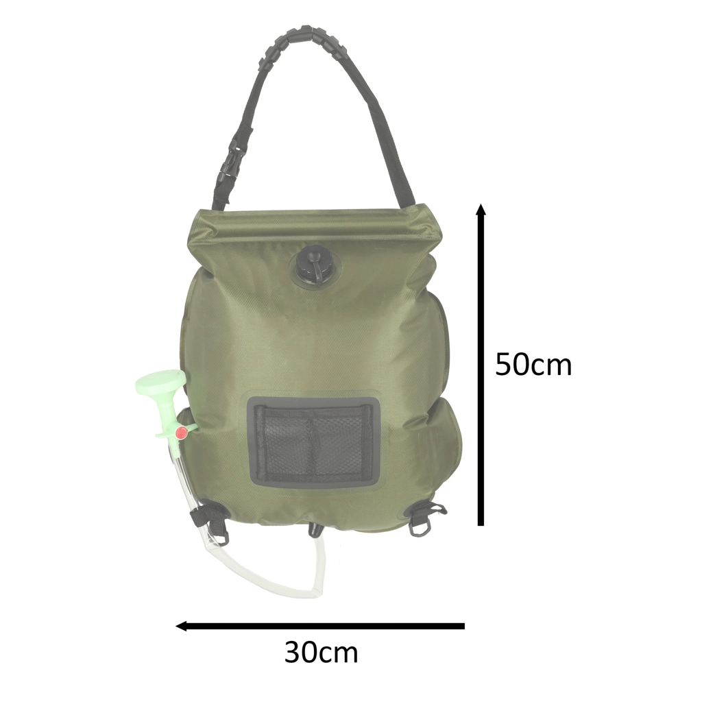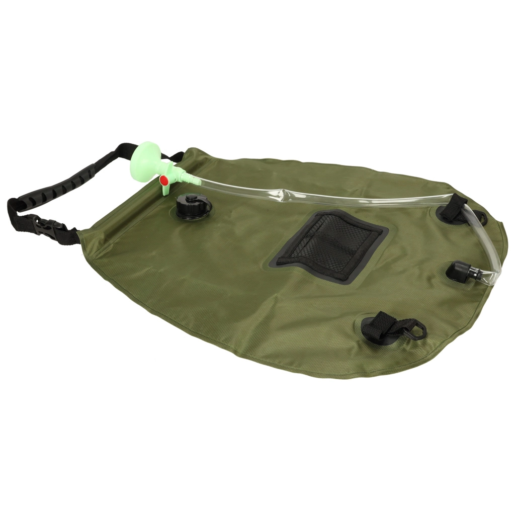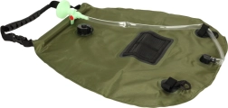 В нашия бърз и удобен соларен къмпинг душ ще откриете спокойствие след дълъг ден прекаран навън. Достатъчно е да го напълните с вода, да прикрепите душ слушалката и да се насладите на релаксиращ душ сред природата. Специалният материал на душа позволява загряване на водата от слънцето, така че няма да се притеснявате от студена вода.