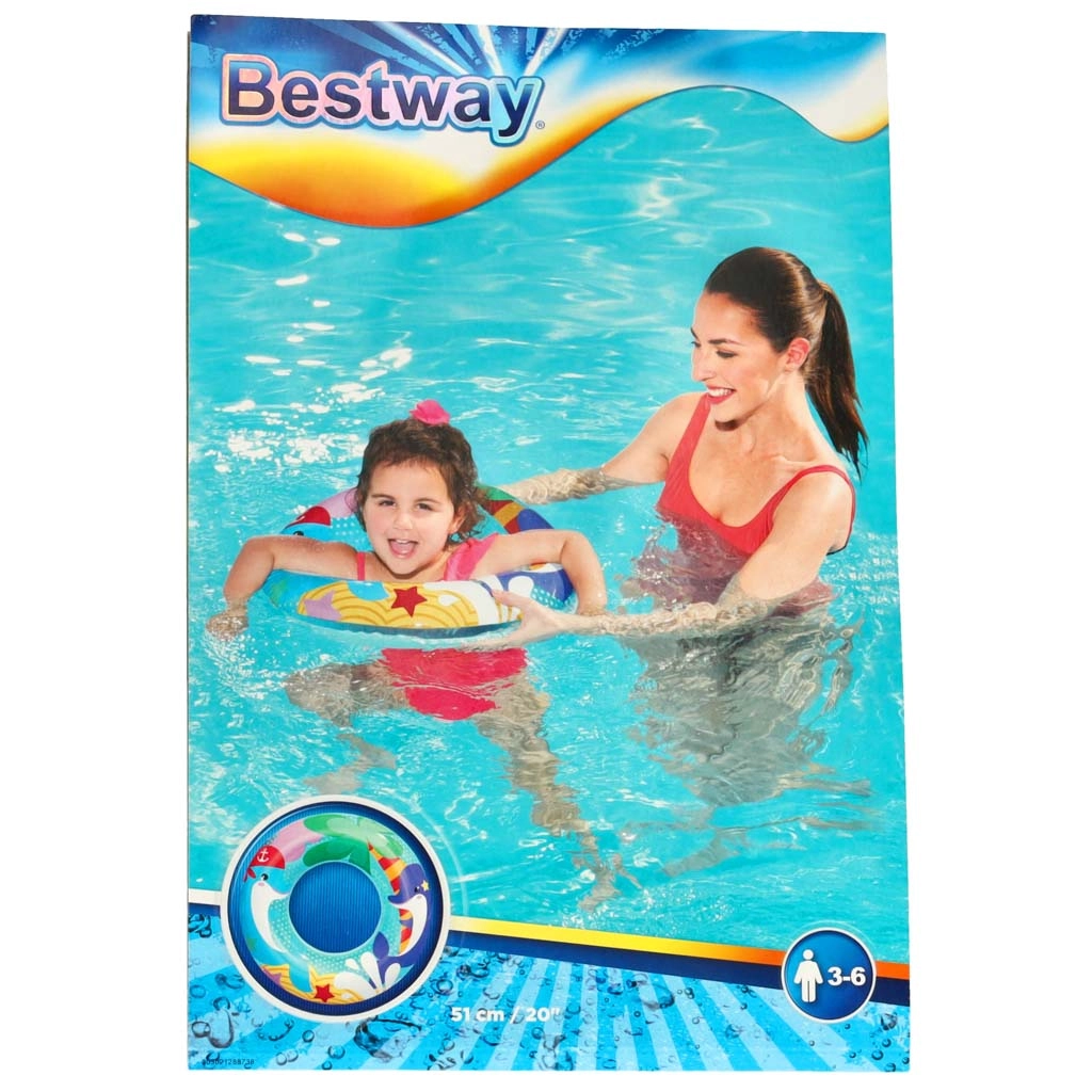 Насладете се на лятното освежаване с детския плувен пояс BESTWAY. Веселият дизайн с делфин привлича децата и ги мотивира за водни игри. Поясът с диаметър 51 см е отличен избор за най-малките – предоставя стабилна плаваемост, без да ограничава свободата на движение.