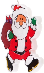 Очарователна висяща декорация с мотив на Св. Николай с подаръци, която озарява всеки интериор. Вграденото LED осветление създава приятна коледна атмосфера, декорацията е двустранна и се закрепва лесно с вендуза към прозорец, врата или гладка стена. Батерийното захранване без кабели гарантира удобното поставяне навсякъде.