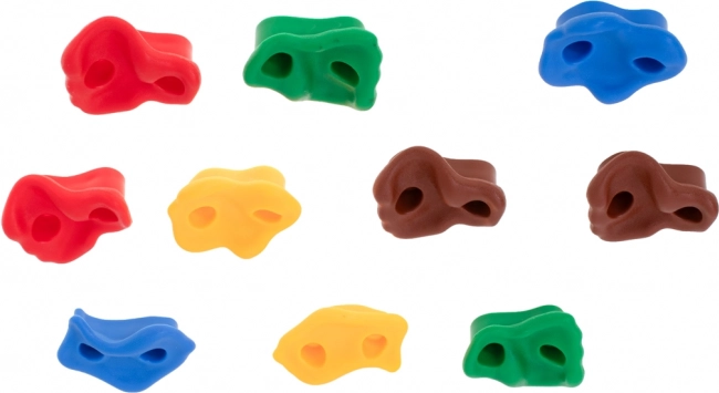 Цветните катерачни хватки за деца превръщат всяка стена в забавно препятствено трасе. В комплекта ще намерите всичко за бърз монтаж – 10 здрави хватки, болтове, шайби и гайки и шестограмен ключ. Хватките имат незалепваща, груба текстура и различни форми за безопасен и уверен захват.
