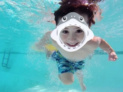 Маската е идеална за първи досег с водата и за малки плувци, които искат да изследват под повърхността. Подходяща за басейн, както и за лятна почивка на езеро или море. Забавният вид на акулата стимулира смелостта и желанието за тренировка.