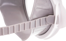 Мекият силикон в комбинация с пластмаса осигурява приятно прилепване към лицето и ограничава навлизането на вода към очите и носа.